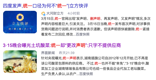 本来不打算写“315酸菜”了,但看到“统一老坛”一顿危机公关操作,大叔实在是不敢认同,决定还是再唠个5分钟。