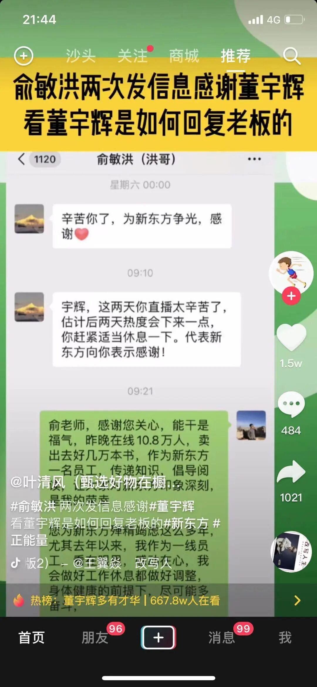 董老师借助媒体传播,又不停滴给“新东方直播间”制造新闻话题,就连俞敏洪给董宇辉发微信感谢都能上热搜,还加了一句:董宇辉的回复太机智了……