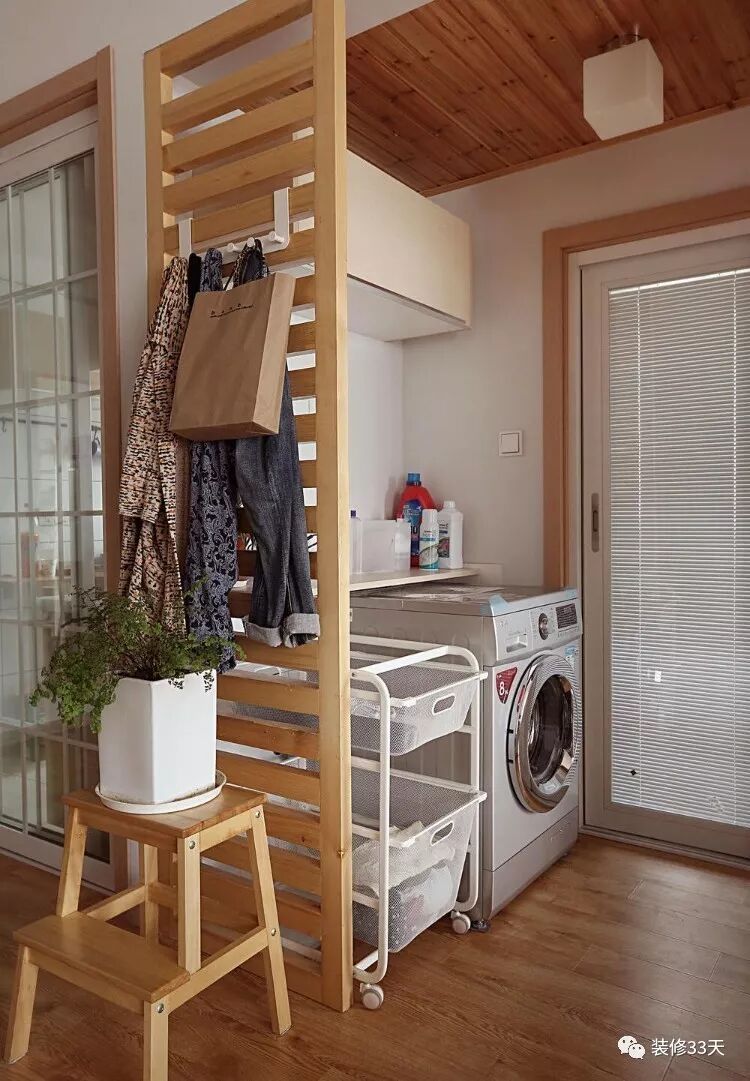 大户型家庭可能会觉得这种问题还值得考虑啊?可对于小户型来说,不一定有足够大的阳台或者没阳台;不一定有足够大的卫生间;这还真可能成为一个问题。另外,摆放洗衣机的位置如何更高效的利用空间,如何更好看也是值得考虑的。