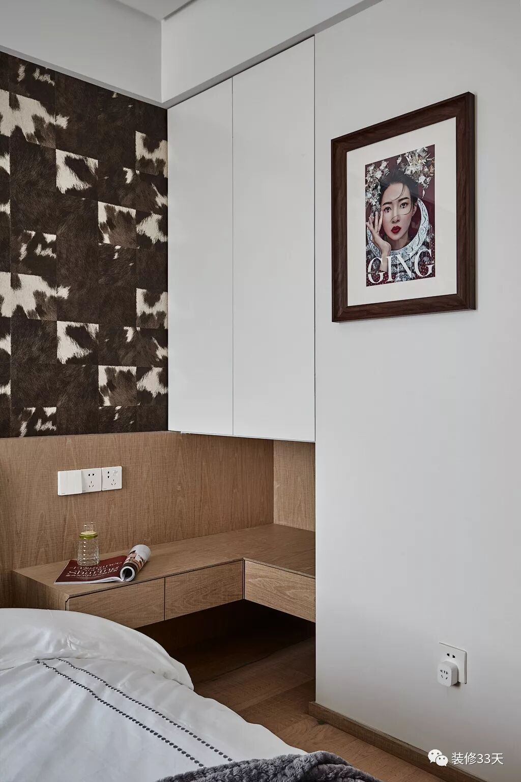 ▲ 主卧设计搭配让人放松舒缓,木纹理转角床头柜结合白色吊柜,简约实用并最大化的利用角落空间,给卧室增添出更多收纳机能