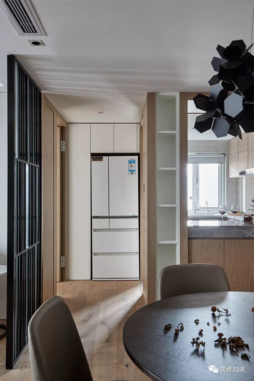 ▲ 本案例135平,入户设计师在沙发旁定制铁件隔断,半水纹玻璃半镂空的搭配,看起来很通透,对采光上也无影响