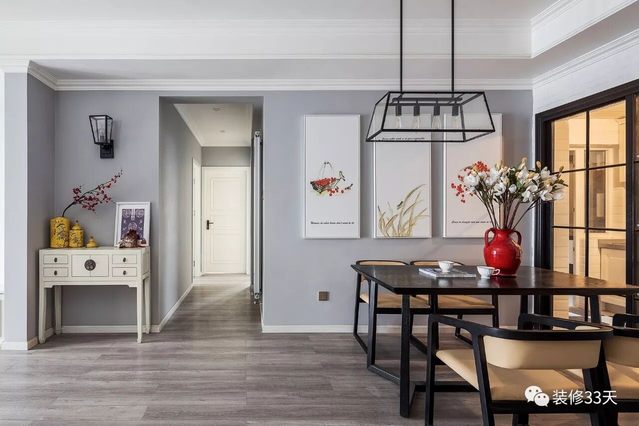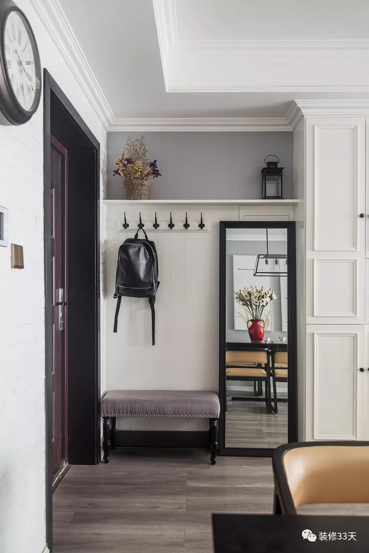 ▲ 建筑面积120平,造价22万(软硬装+家具家电),入户护墙板与层板的设计,充满简约美式格调,既美观又实用