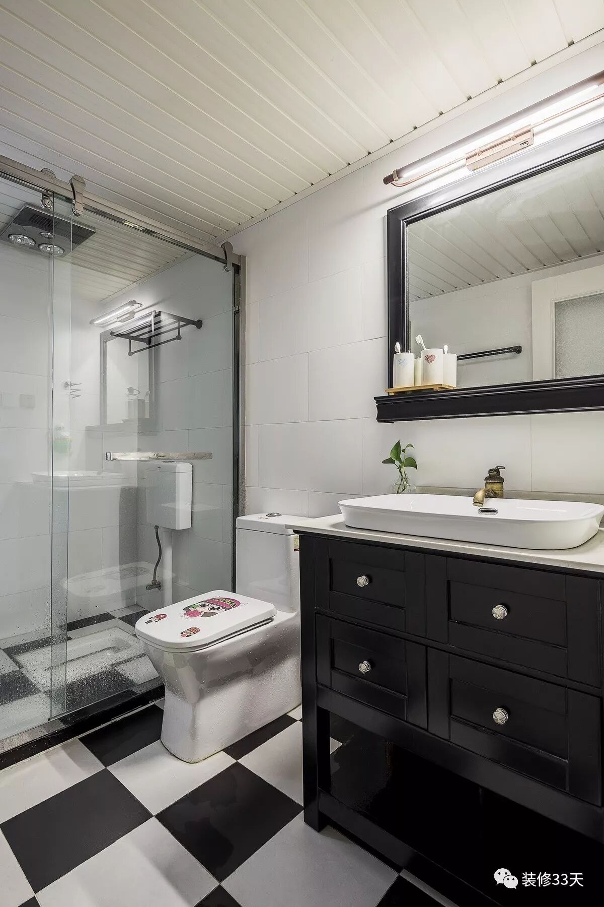 ▲ 卫生间黑白搭配,整体简约个性,同时设置坐便器与蹲坑,满足家人需求