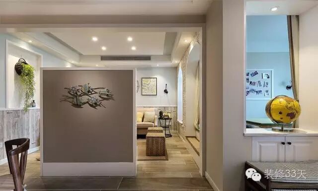 ▲ 小户型为了更好的利用空间,想要的又比较多,一步一景,进门的景象是这样的,客厅竖了一面半高的墙
