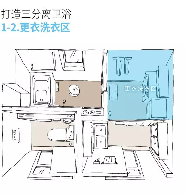 三分离空间:干区、湿区和如厕完全分开