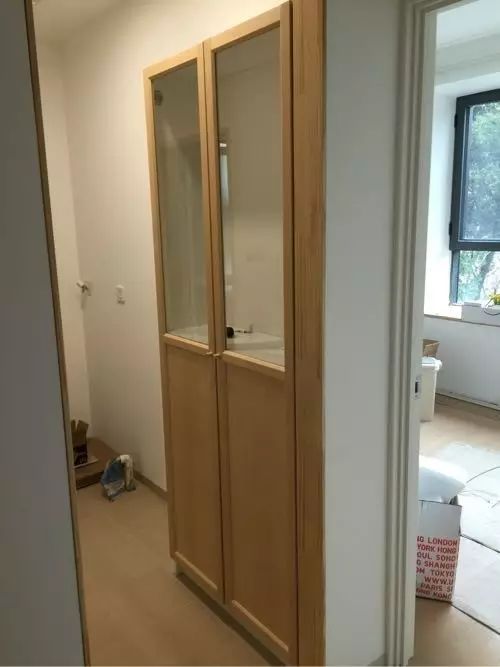 ▼【储物柜】设置在台盆的对面,把原先屋里的IKEA的【毕利书橱】搬到这里