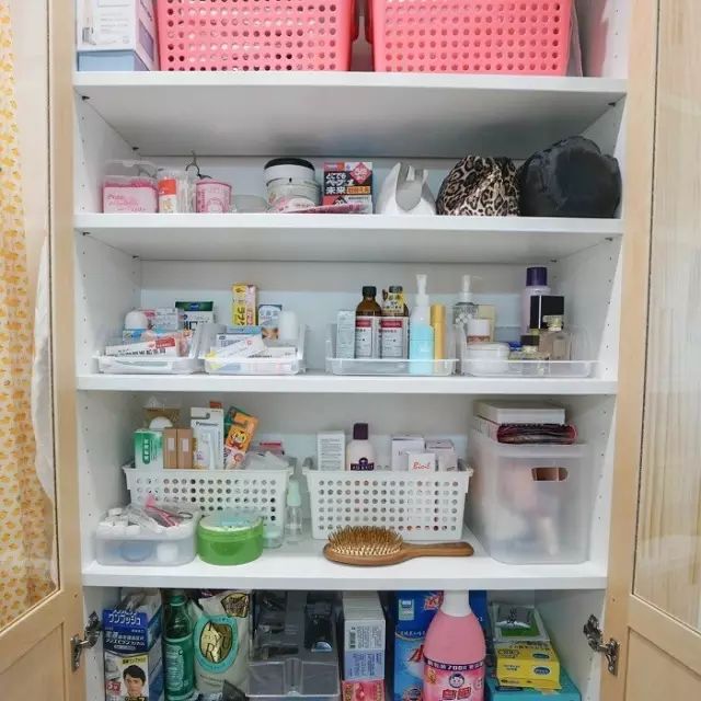 ▲ 收纳强大的立柜,上层透明玻璃部分,放随时需要取用的,一眼就能找到的物件,下层隔断里放丑丑的各种洗涤用品。