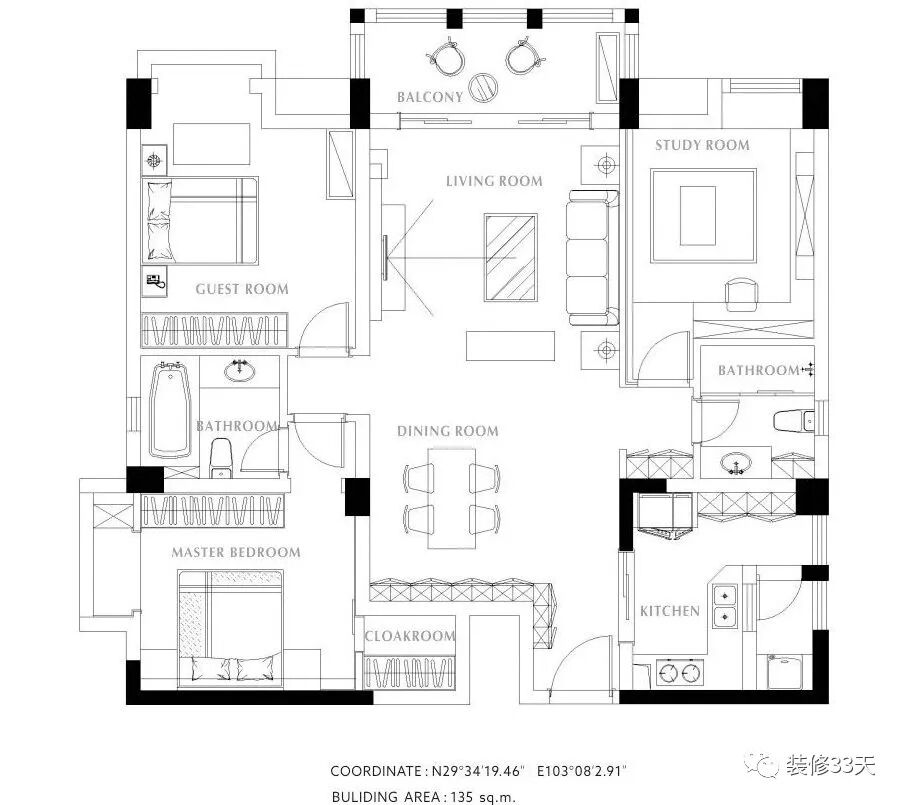壹阁设计其他作品推荐,点击下图查看118平极简质感两室 低彩度黑白灰几何空间