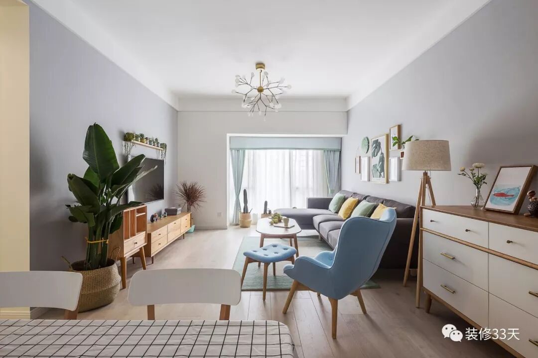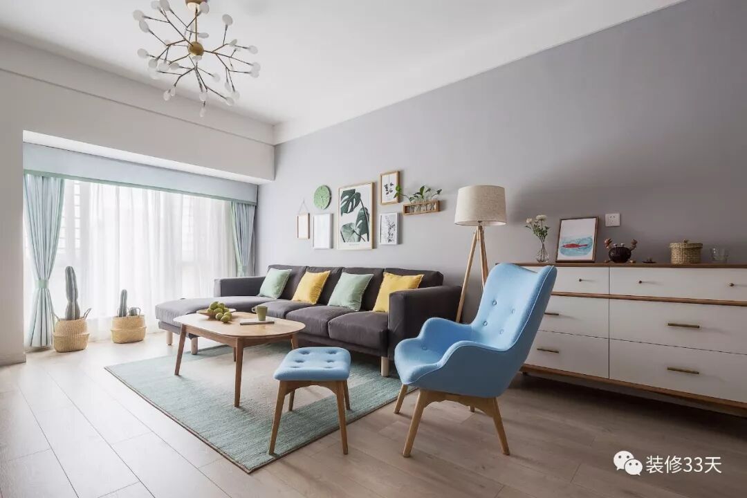 ▲ 独活树吊灯与蓝色单椅提升空间颜值,更具北欧风情