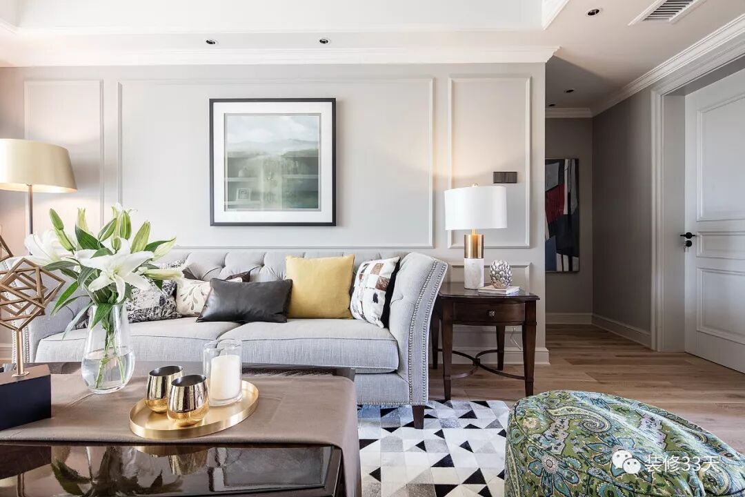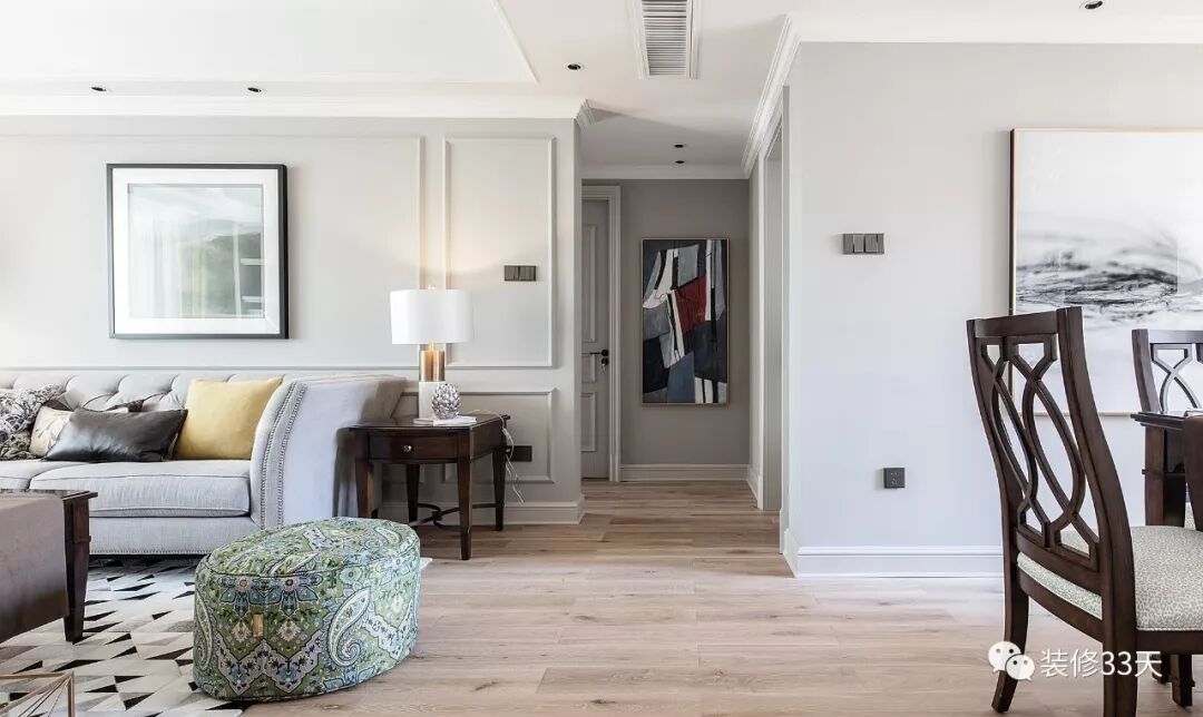 ▲ 建筑面积108平,总造价40万,设计师以简约美式风为主调,打造温馨居家环境,用大幅装饰画作入户端景