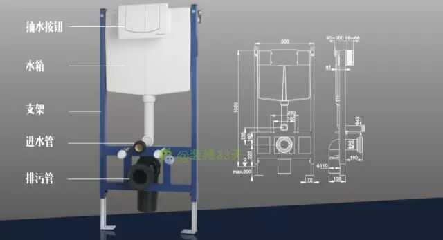 2、水箱隐藏在墙壁内,冲水噪音小;
