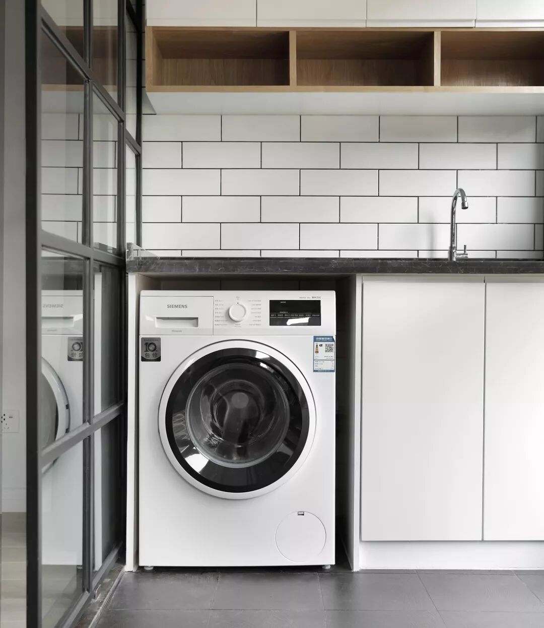 但有些户型没有阳台,或者说阳台准备做其他用途,比如改造成书房之类,那或许可以把洗衣机放置于卫生间干区。