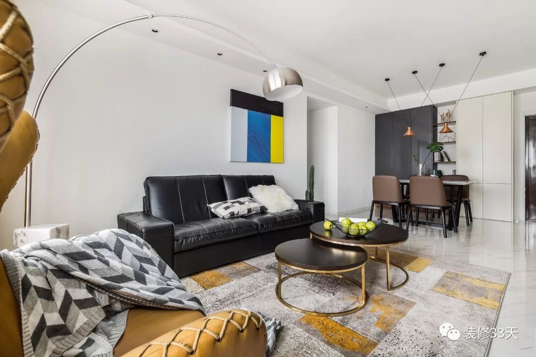 ▲ 建筑面积108平,半包造价6万,女主是专业代购,男主是技术工程师,公领域整体黑白灰色调的空间加入少量黄蓝色做点缀