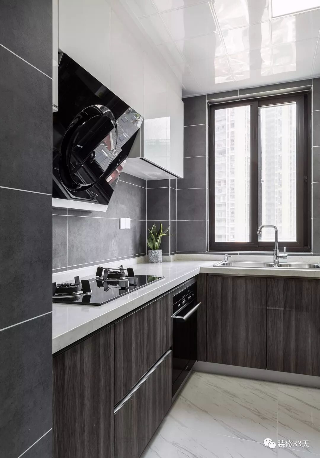 ▲ 干净又大方的黑色与灰色,感官上让厨房降温