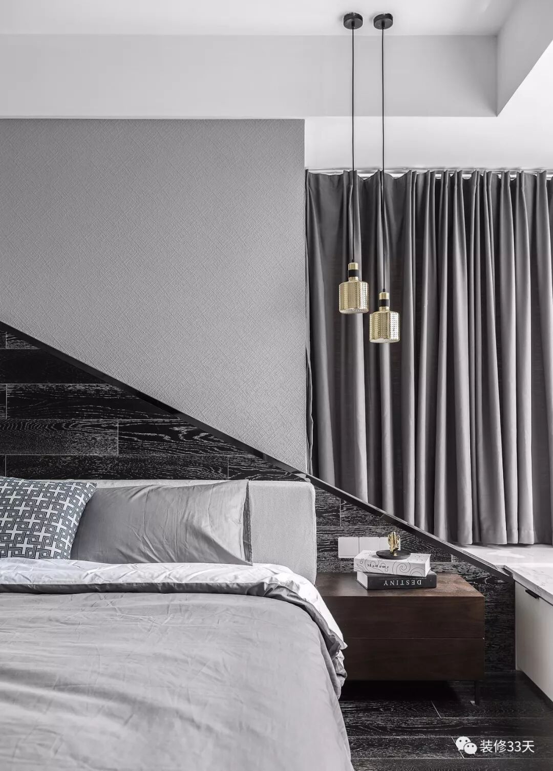 鸿鹄设计其他作品推荐,点击下图查看100平黑白灰北欧 公共区与卧室错层设计