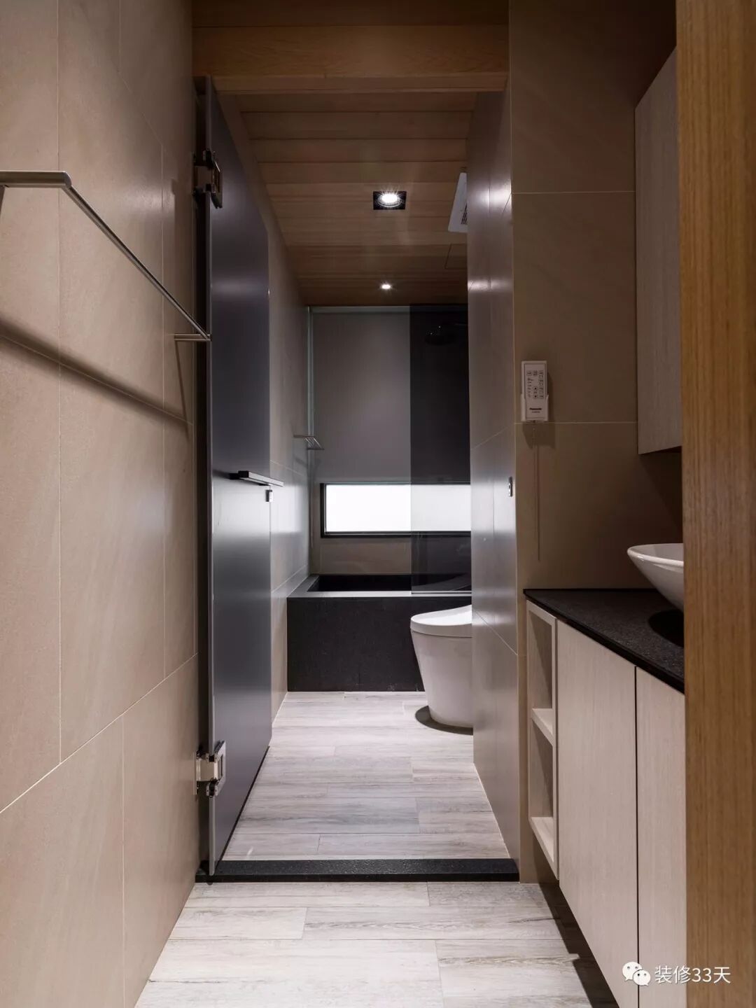 ▲ 卫生间使用香桧木封顶,小空间洗浴时可呼吸天然香氛,把门内移,洗手台外置,提高使用效率