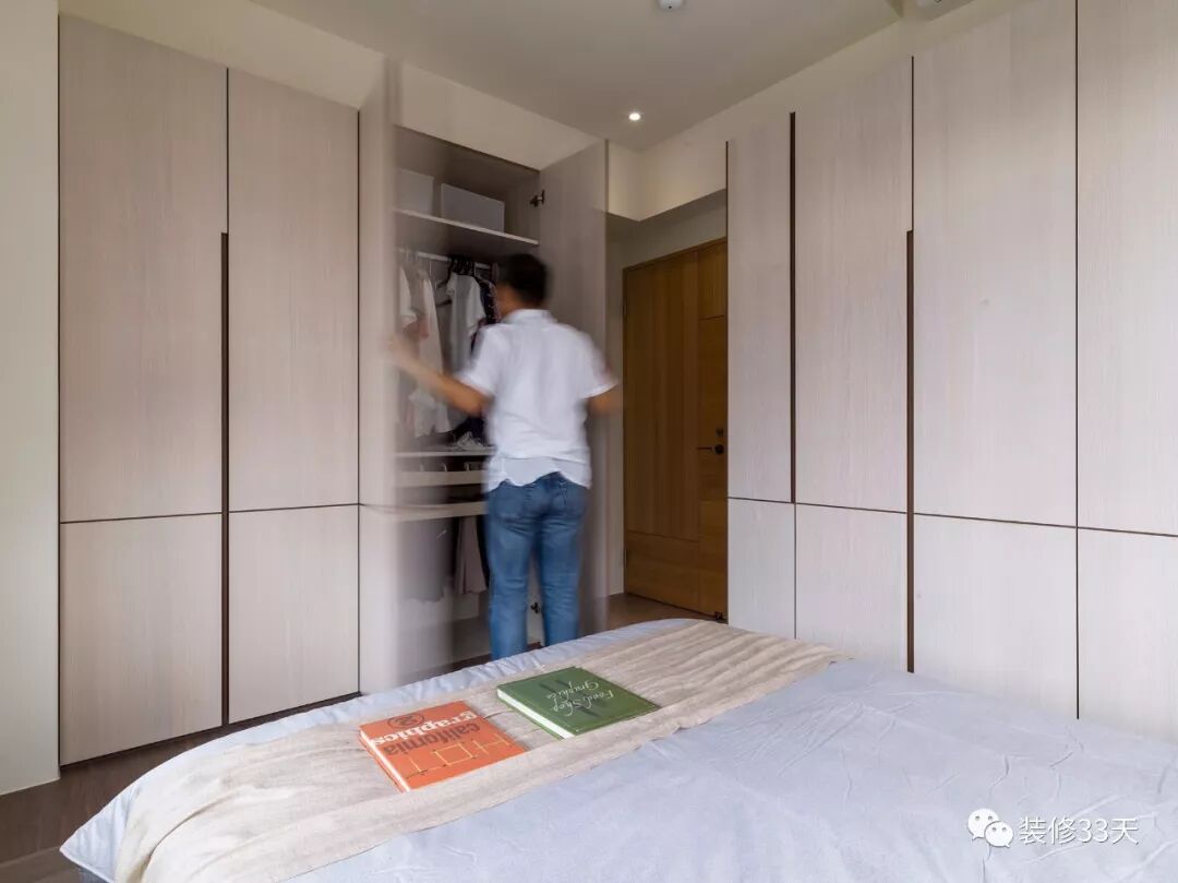 ▲ 利用床尾空间规划足够的衣柜,满足卧室收纳,不施作到顶的设计,让收纳功能更人性化,同时也避免置顶柜体带来过重压迫感