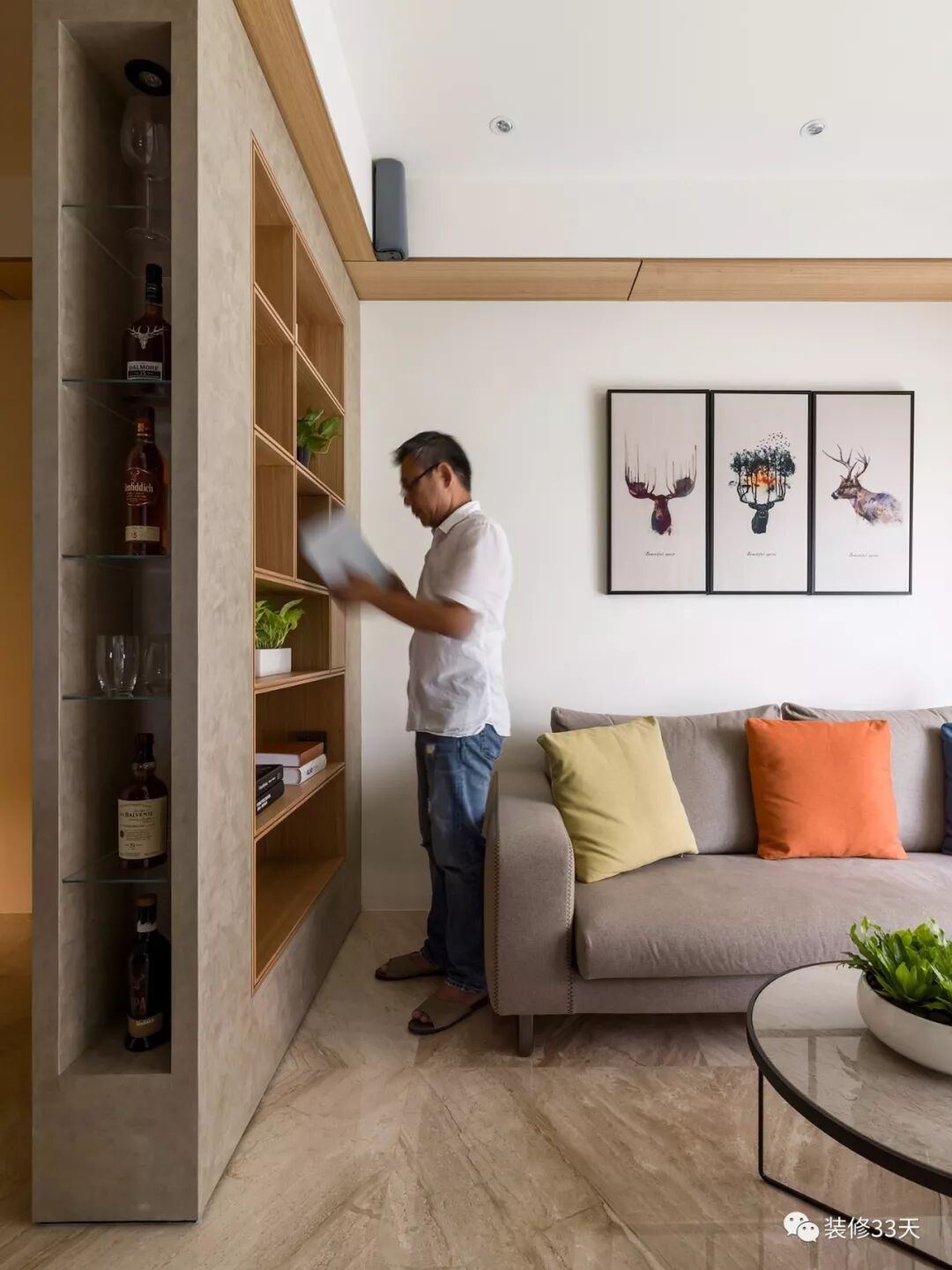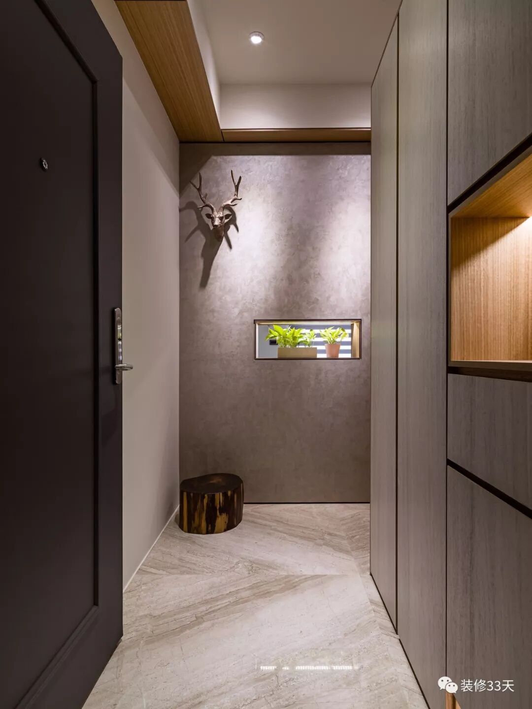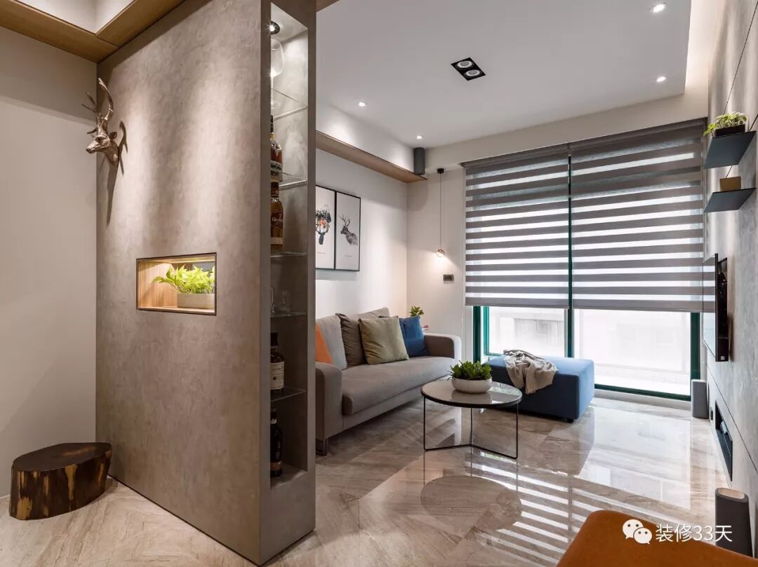 ▲ 建筑面积60平,玄关新增一面综合隔断,端景,展示于一体的墙面,并解决风水问题