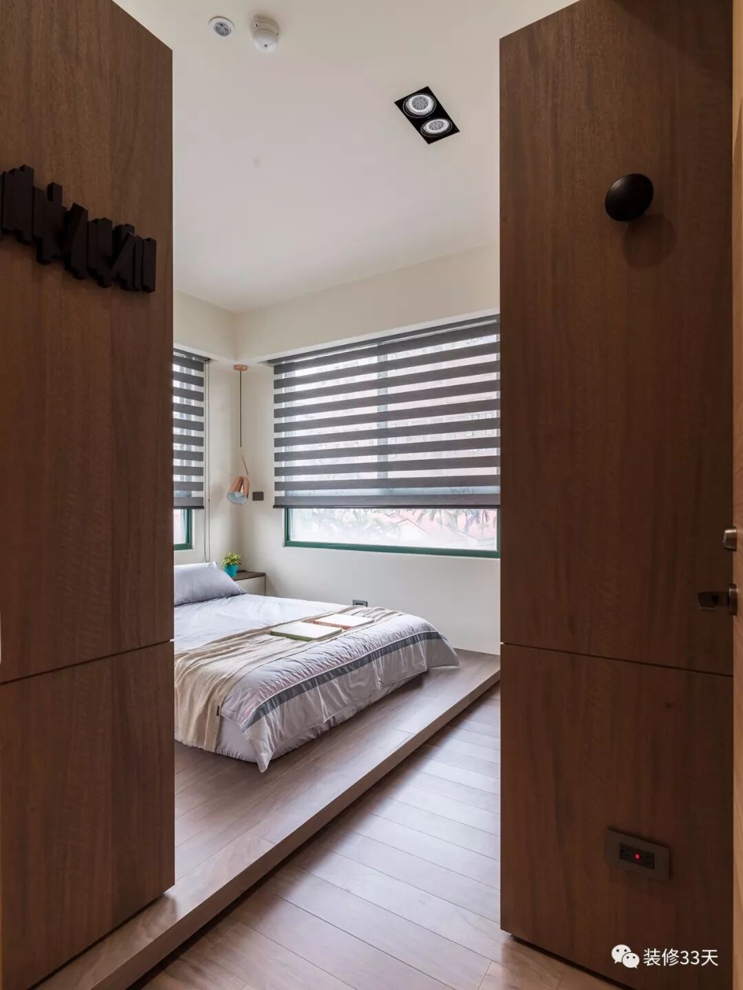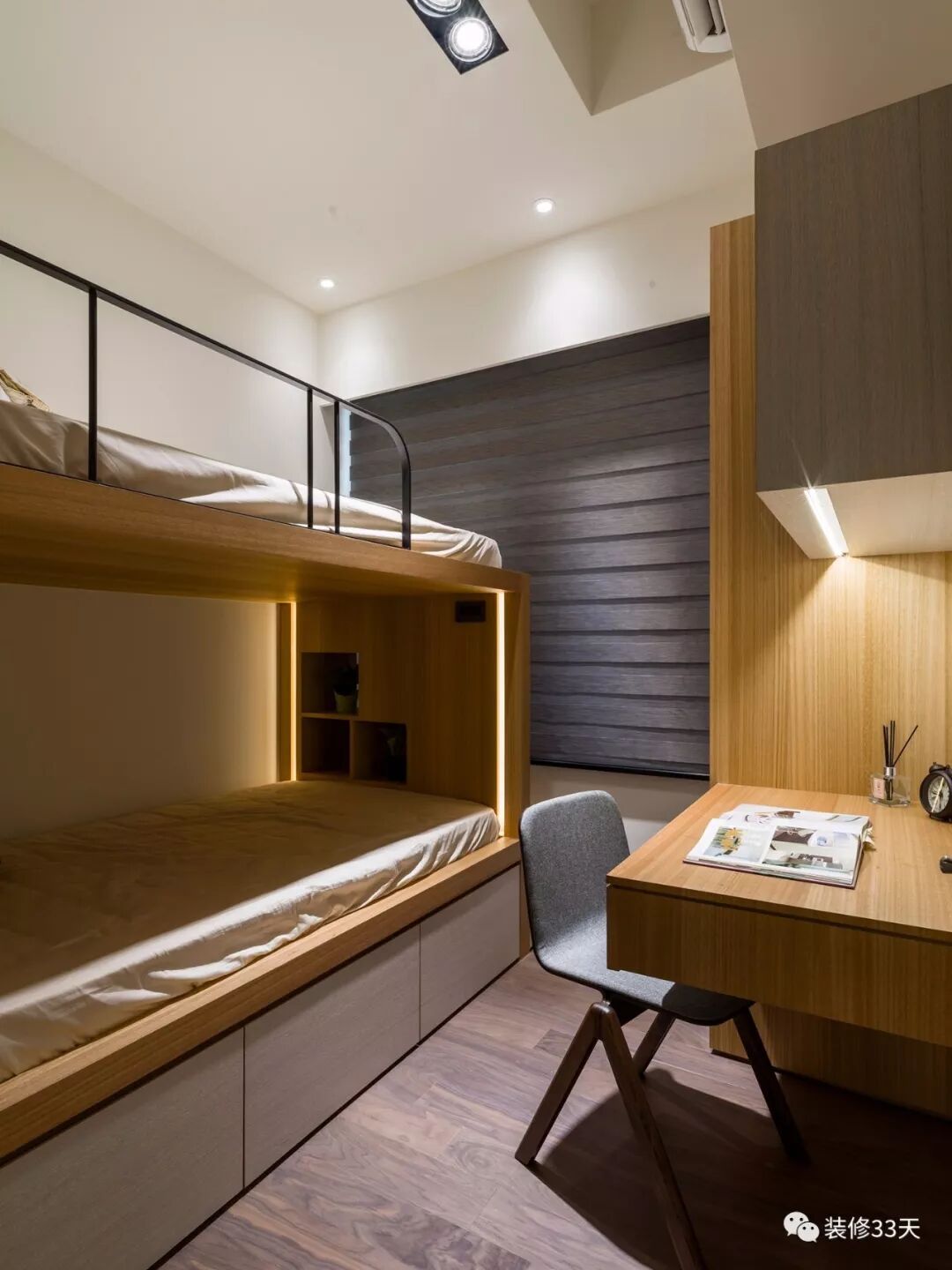 ▲ 次卧,木作一体成形的复合式床架,把单层空间作出双层模式,借着机能向上延伸,并有效利用