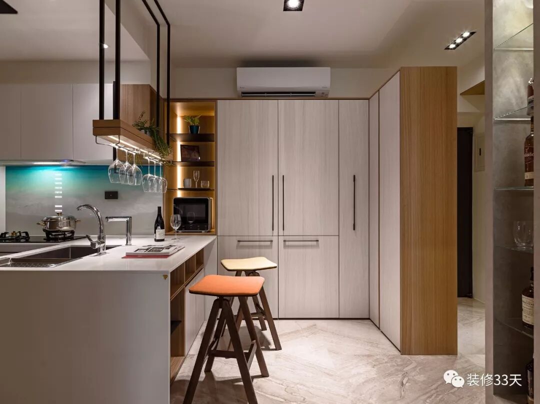 ▲ 餐厨领域依照一家人需求量身订制,考虑到人口简单,于是以中岛吧台取代餐桌