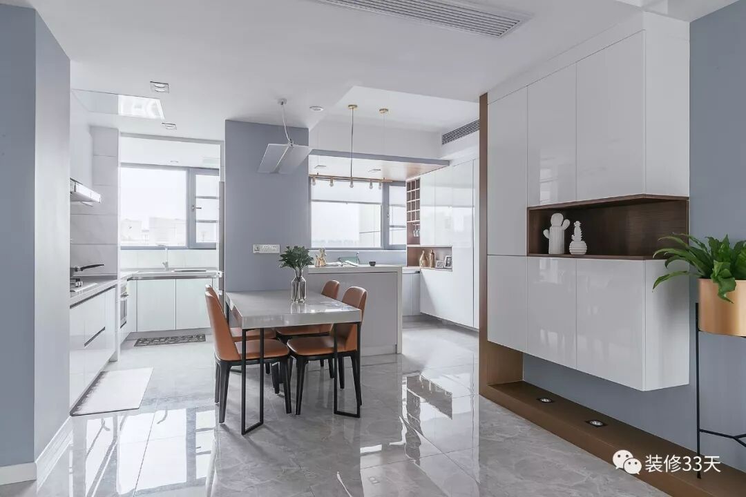 ▲ 灰白色系的厨房,一道墙体让厨房洗切烧分离