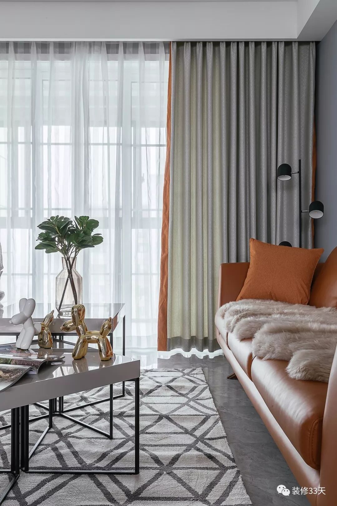 ▲ 整体空间以低饱灰为基调,点缀高饱和暖色软装,平衡空间用色