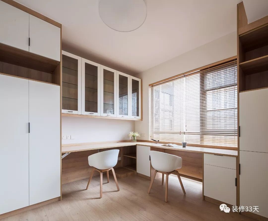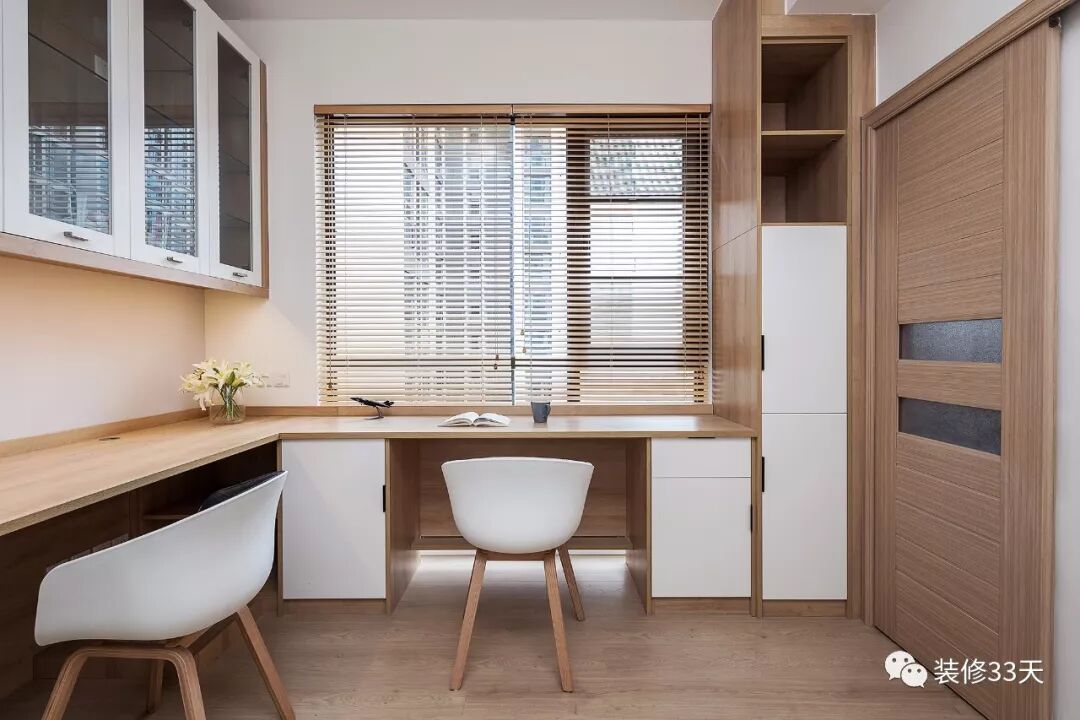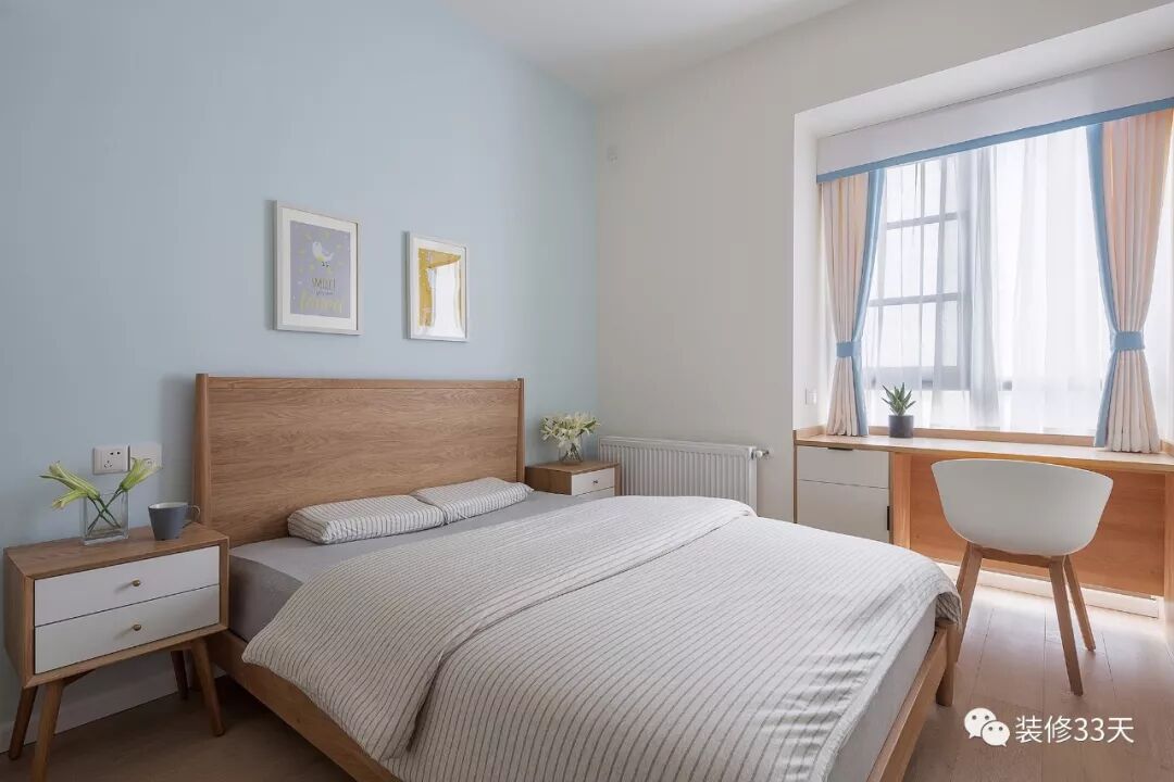 ▲ 次卧,木色搭配冰淇淋色系的墙面给人清凉,丝滑的感觉,按窗户尺寸嵌入书桌,打造卧室阅读区