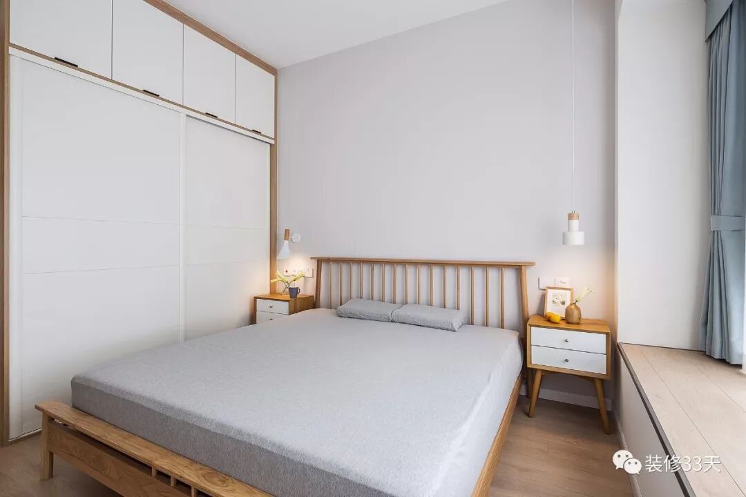 ▲ 床侧设计大衣柜满足空间储物需求,飘窗加置木面作休闲一角