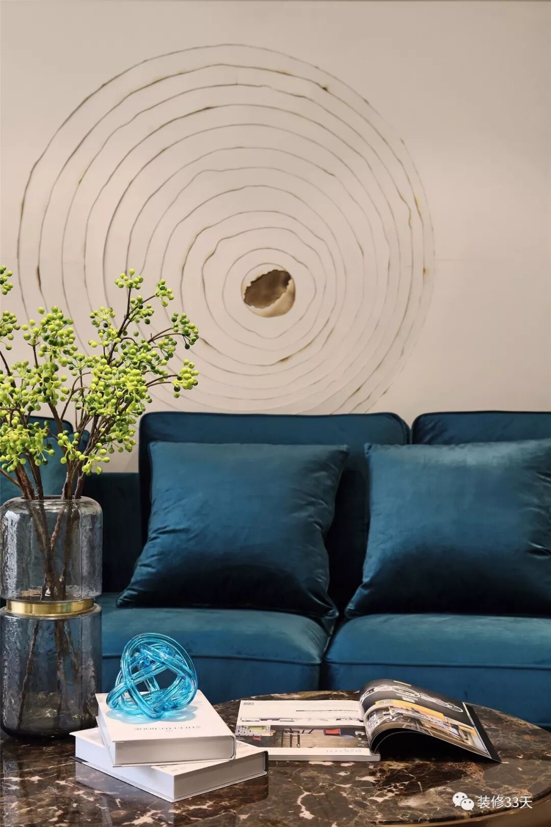 ▲ 主沙发选用深墨绿色,突显摩登气息,都市现代加轻奢的感觉被自然放肆出来