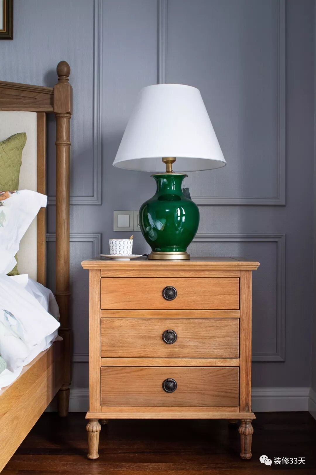 ▲ 原木质感的家具,搭配舒适床品,祖母绿的台灯提升空间调性
