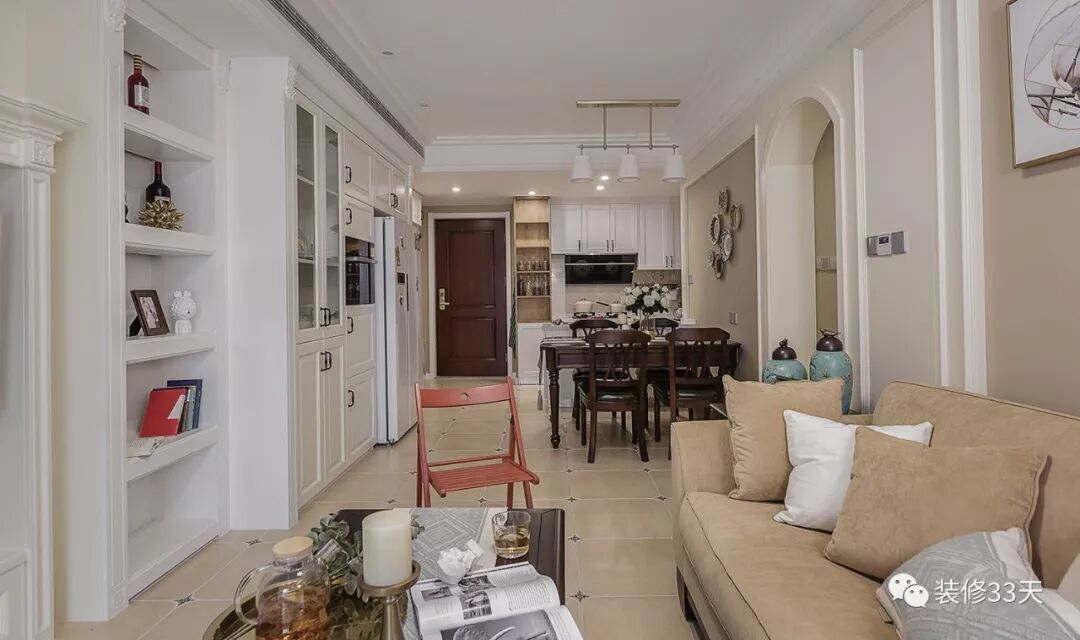 ▲ 客厅望向餐厨空间,过道采用拱形门洞造型,增加空间的柔美线条