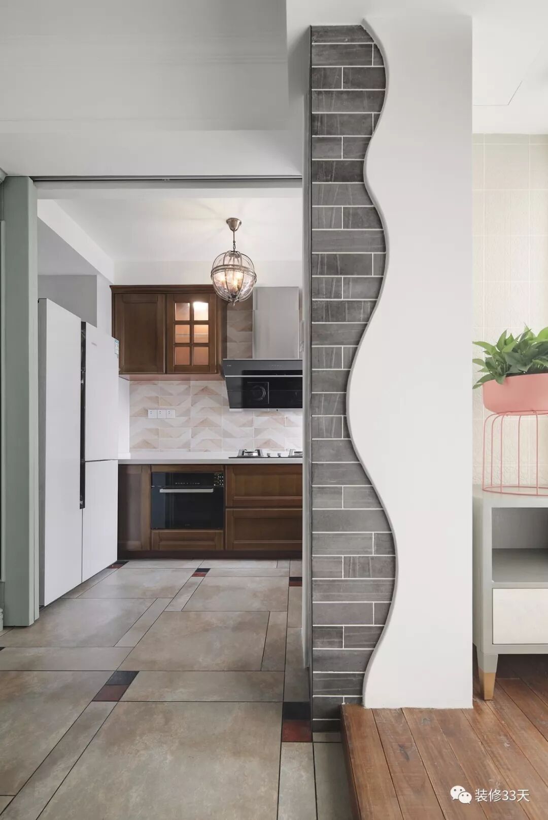 ▲ 阳台望向厨房视角,右侧墙面造型设计