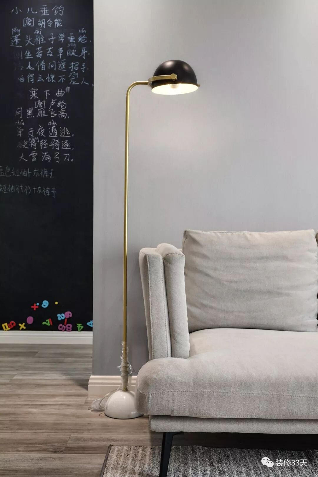 ▲ 沙发一角,造型简约的金色落地灯点缀