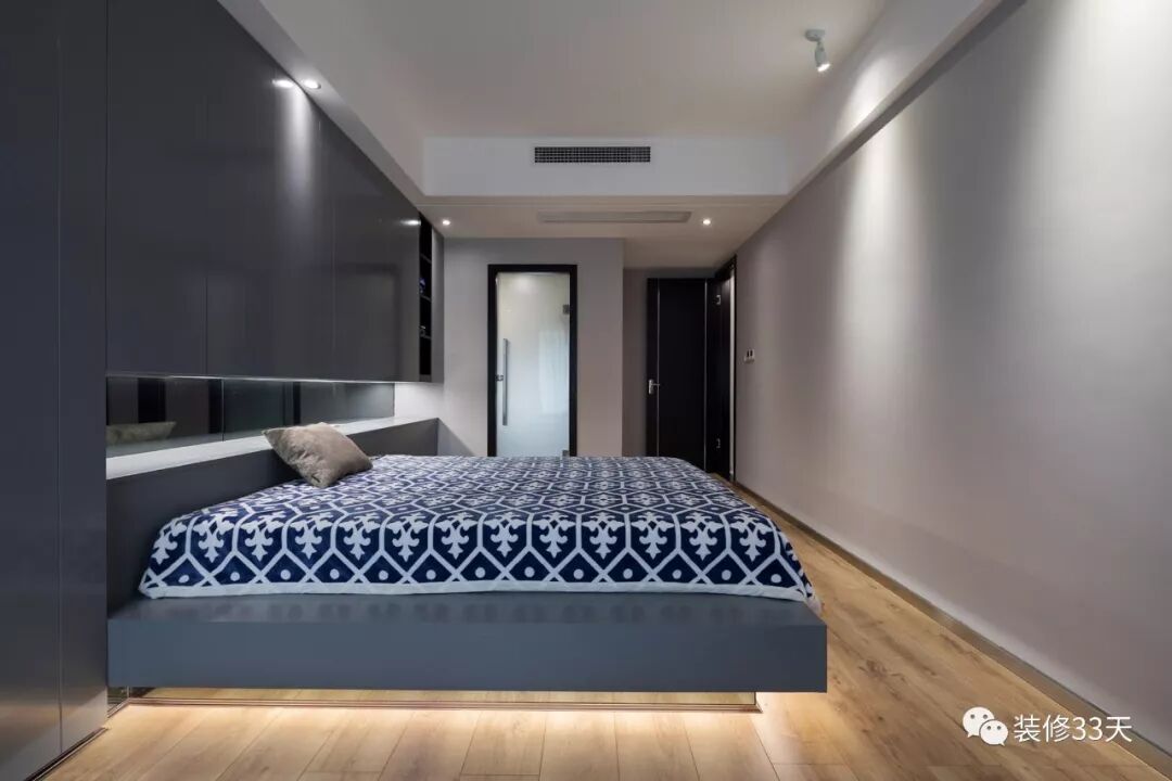 ▲ 次卧,极简空间定制统一色调家具,床头设计上翻式柜体,将空间利用最大化