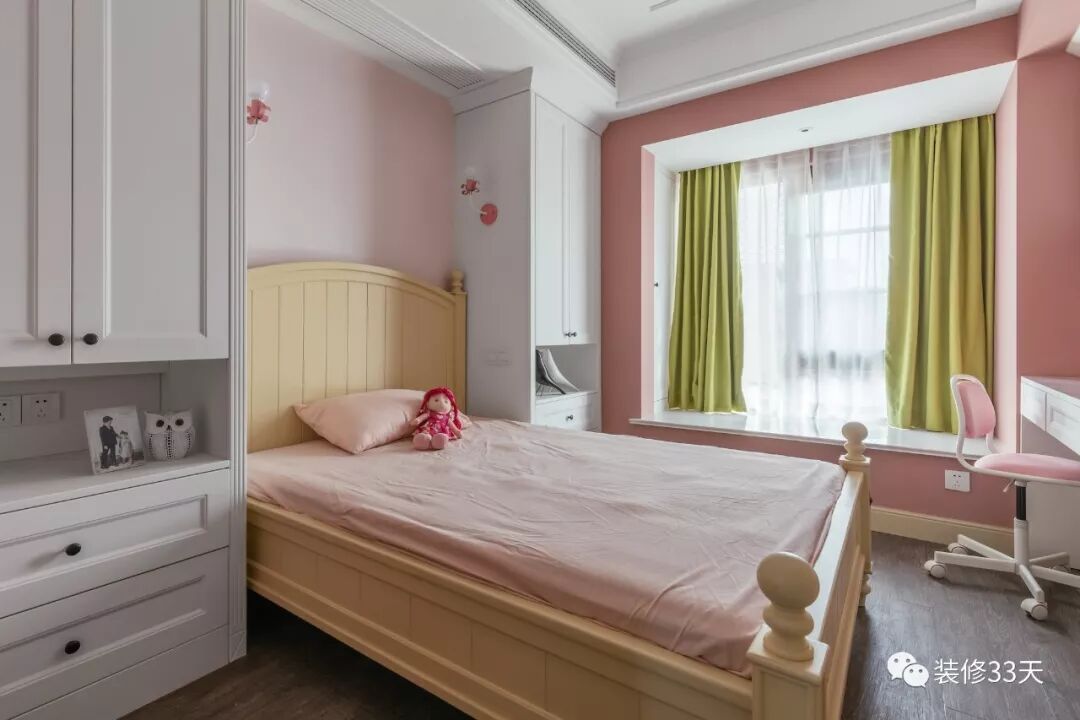 ▲ 美式或者偏欧式的风格中,经常会用到线条或者护墙板,如果设计线条图案的时候能考虑到床的尺寸那就更好了