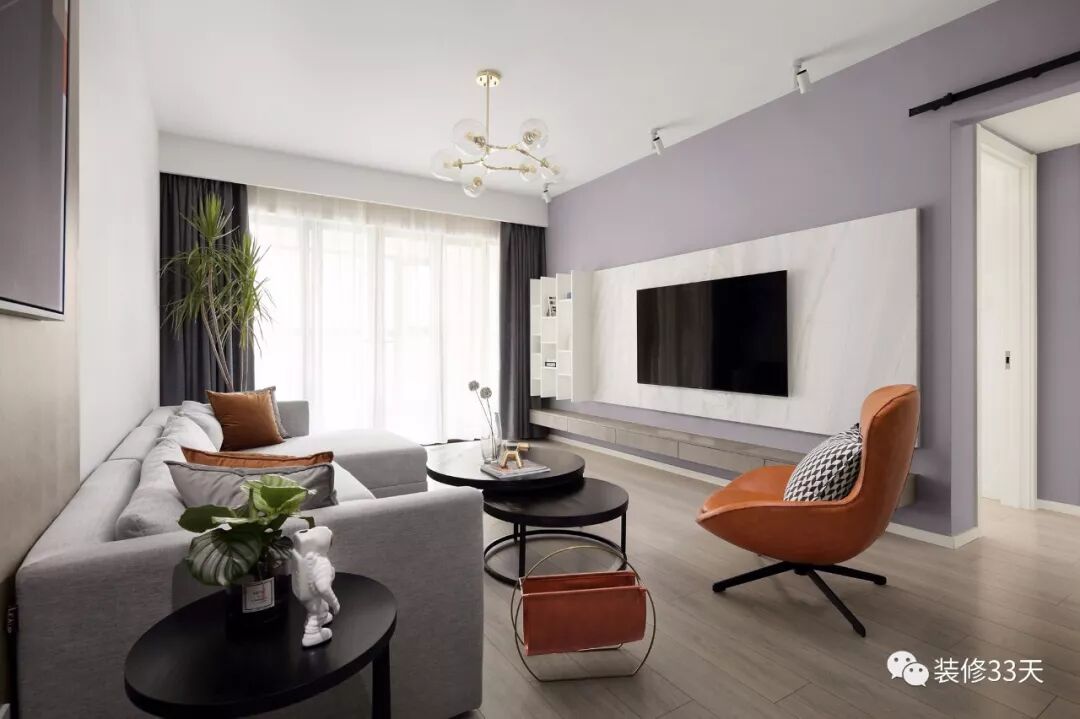 ▲ 客厅整体采用黑白灰的基调,加入橘色系的活跃和木质的温润