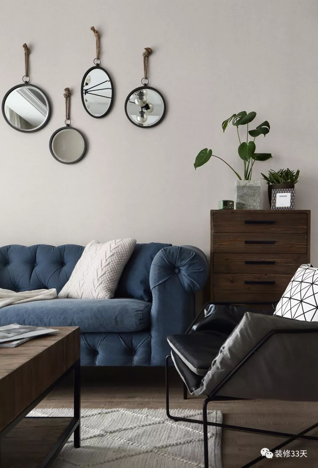 ▲ 沙发背景墙面挂上造型各异的铁艺镜框,空间表情丰富