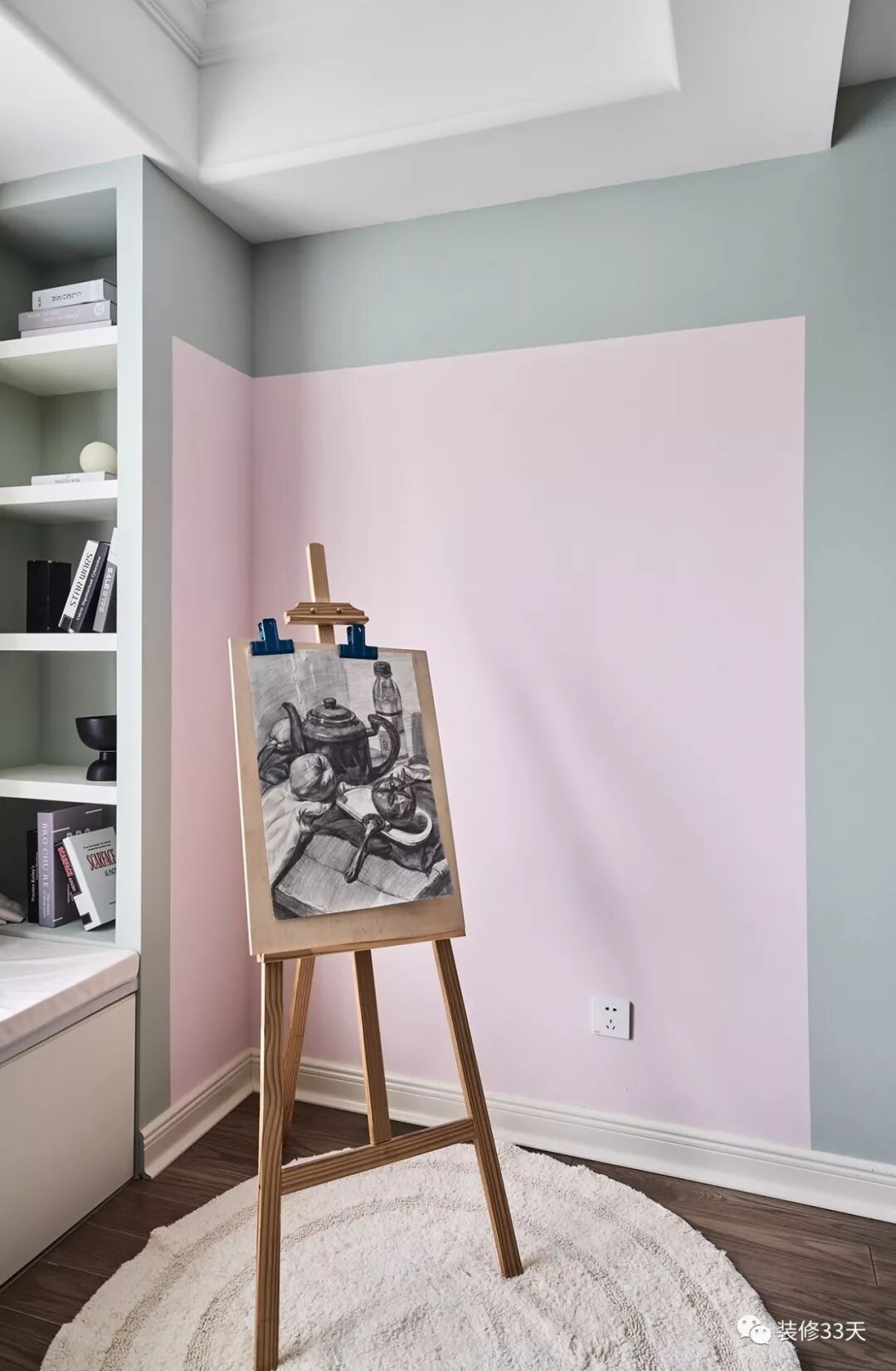 ▲ 女儿房,纳入阳台做飘窗设计,增加柜体满足平时的收纳,大大提升整个空间的利用率