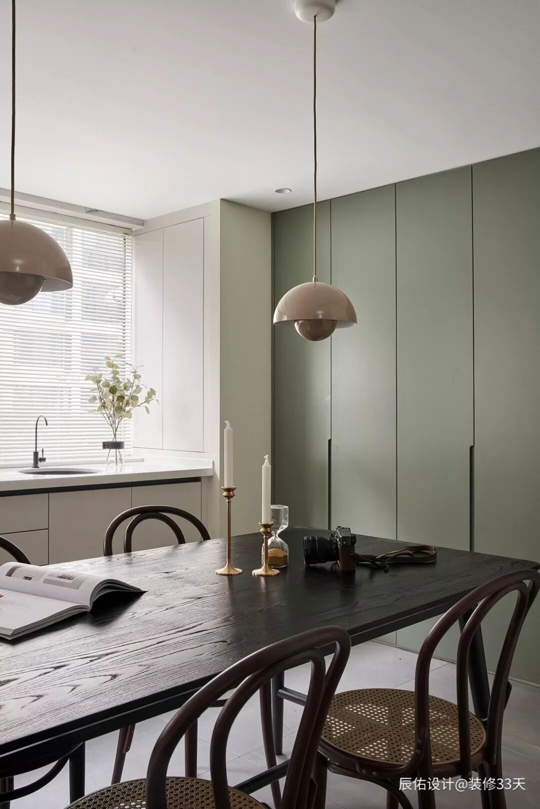▲ 餐厨一体设计,选用莫兰迪色调,让家变得更加恬静温和