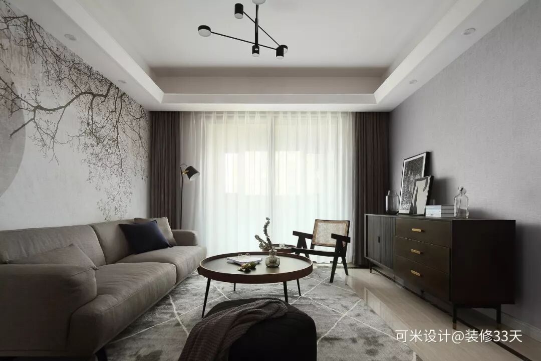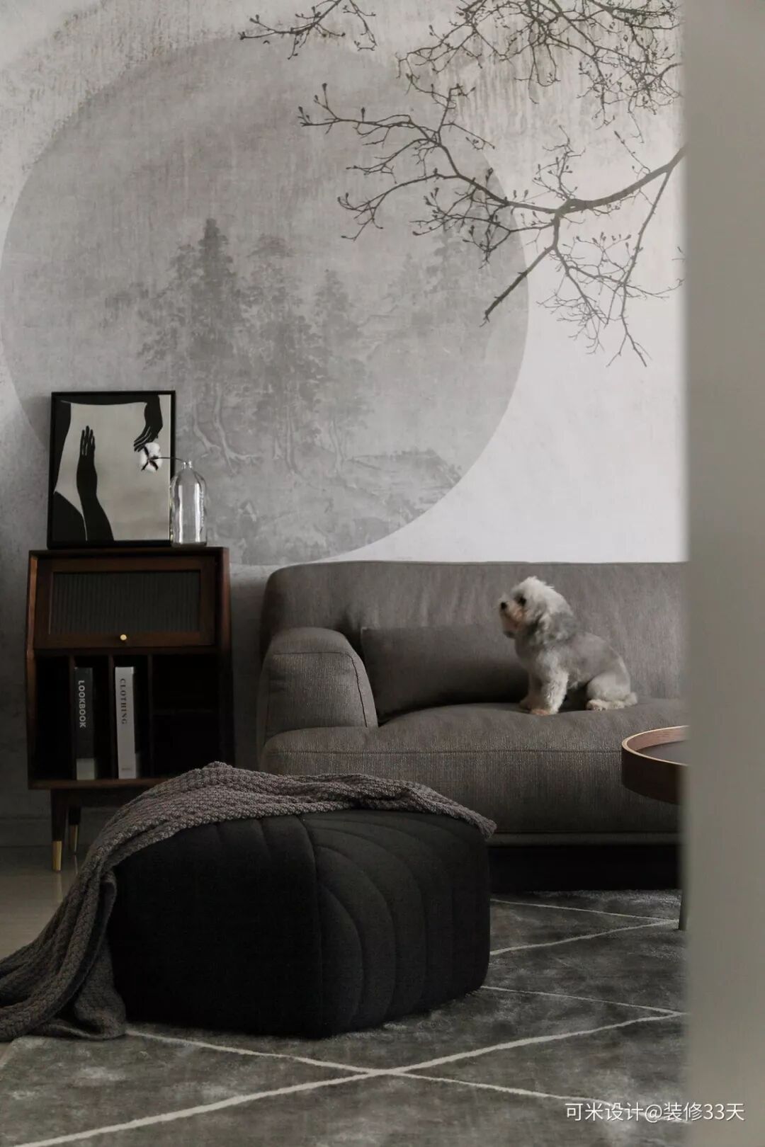▲ 一幅灰白色意境壁画铺贴出客厅沙发背景,淡雅柔美,安静婉约,正好也抒发业主一种独特的心境