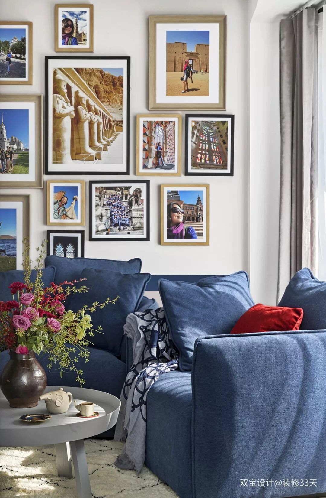 ▲ 沙发背景的装饰画,均出自业主自己的摄影作品,小黄沙发上的包包和饰品,也是业主淘得,不得不赞叹品味
