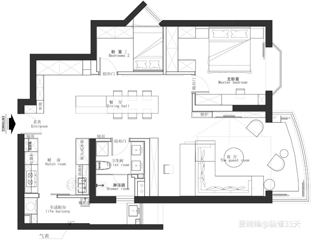 ▲ 使用面积102平,业主是金融海归男,全案委托,拎包入住,要求:1.最大限度保留江景;2.在家办公成为享受