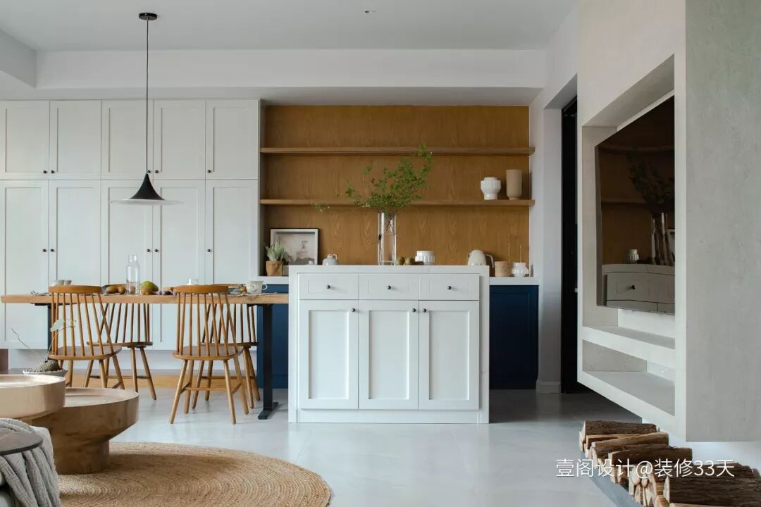 ▲ 餐厨区动线明确,餐桌旁增设岛台增加储物空间,日常可以收纳一些厨房日用品及烘焙工具