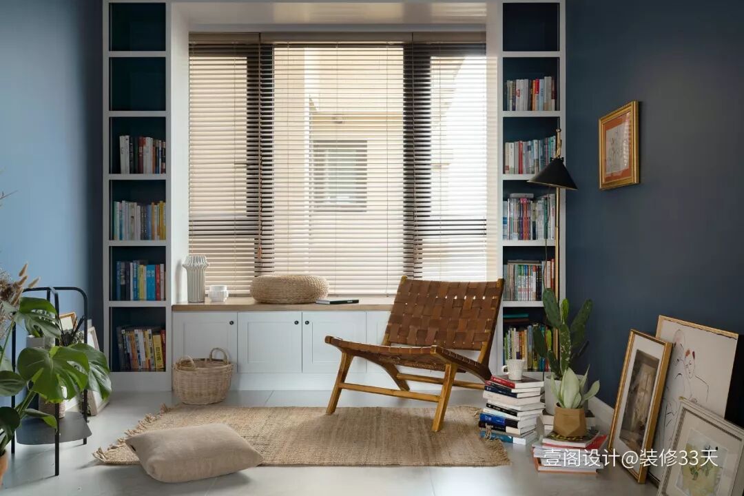 ▲ 将大书房门洞做成开放式,窗户做成内嵌书柜加卡座,方便书籍陈列