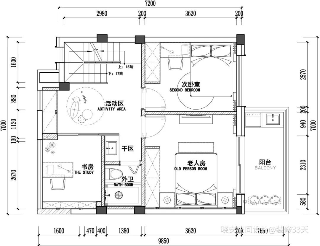 ▲ 公共区域打造一个开放式活动区,与楼梯做镂空隔断
