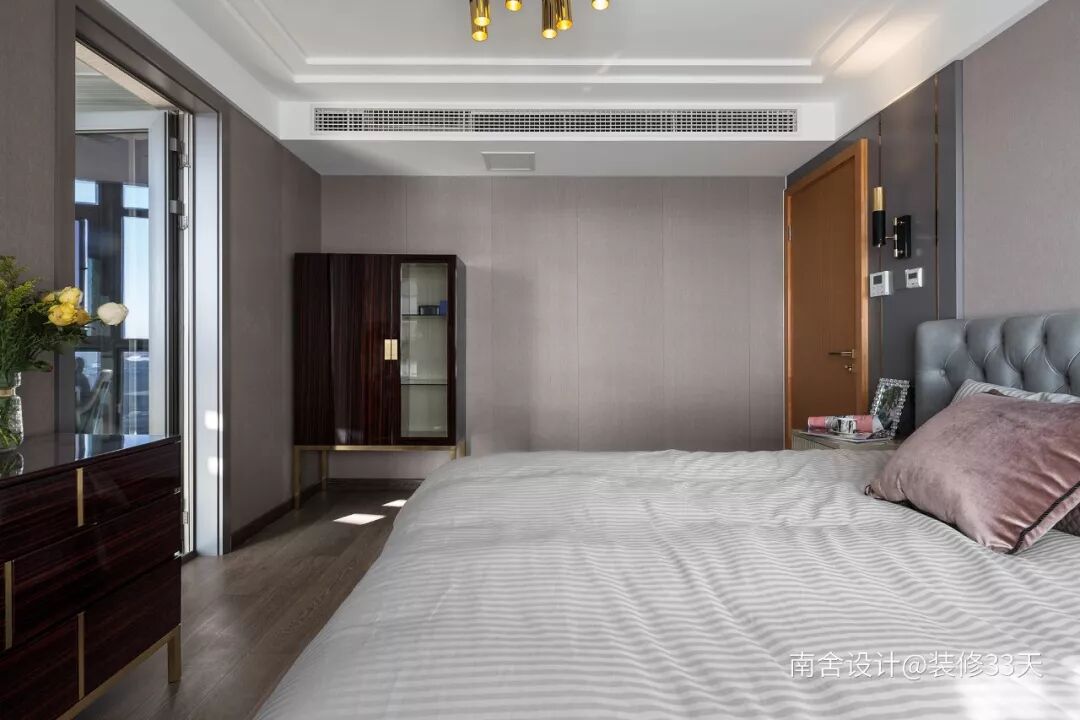 ▲ 主卧布局与一楼卧室一致,空间以灰色作为基调,辅以木色与金色点缀