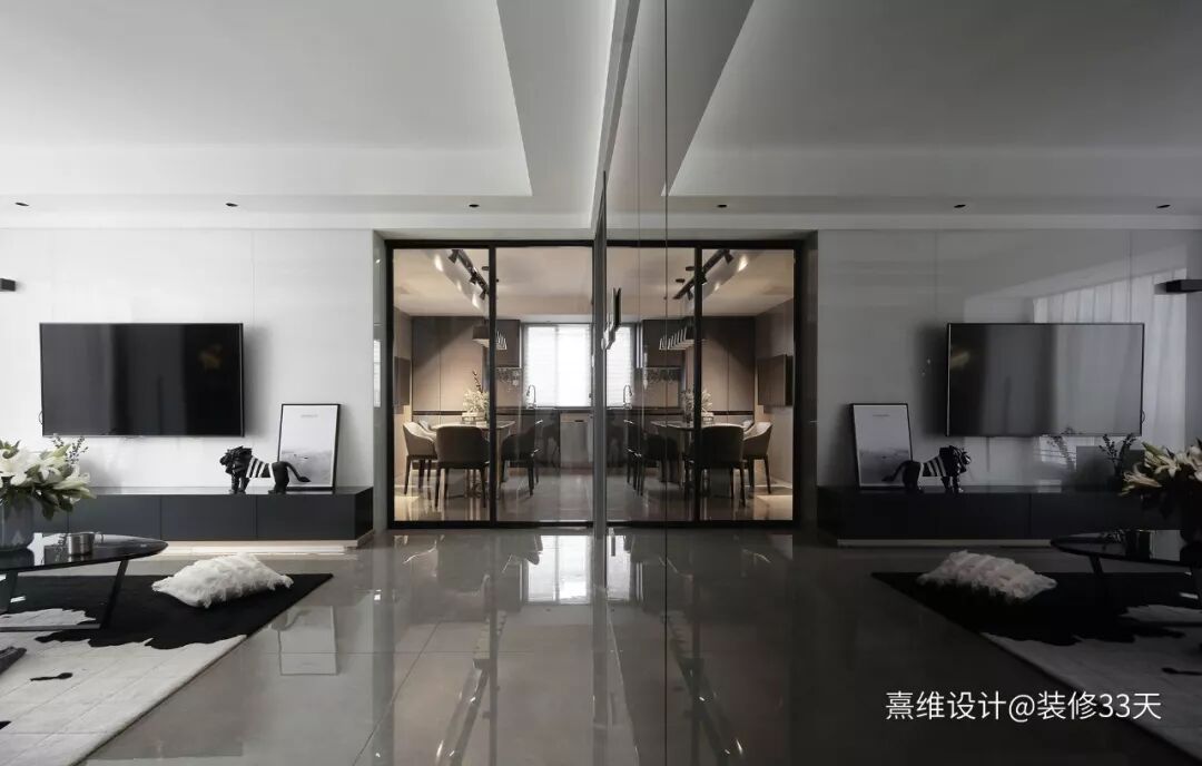 ▲ 建筑面积114平,本案设计师通过丰富的材质进行平衡,以黑白灰色进行穿插搭配,是经典也是时髦