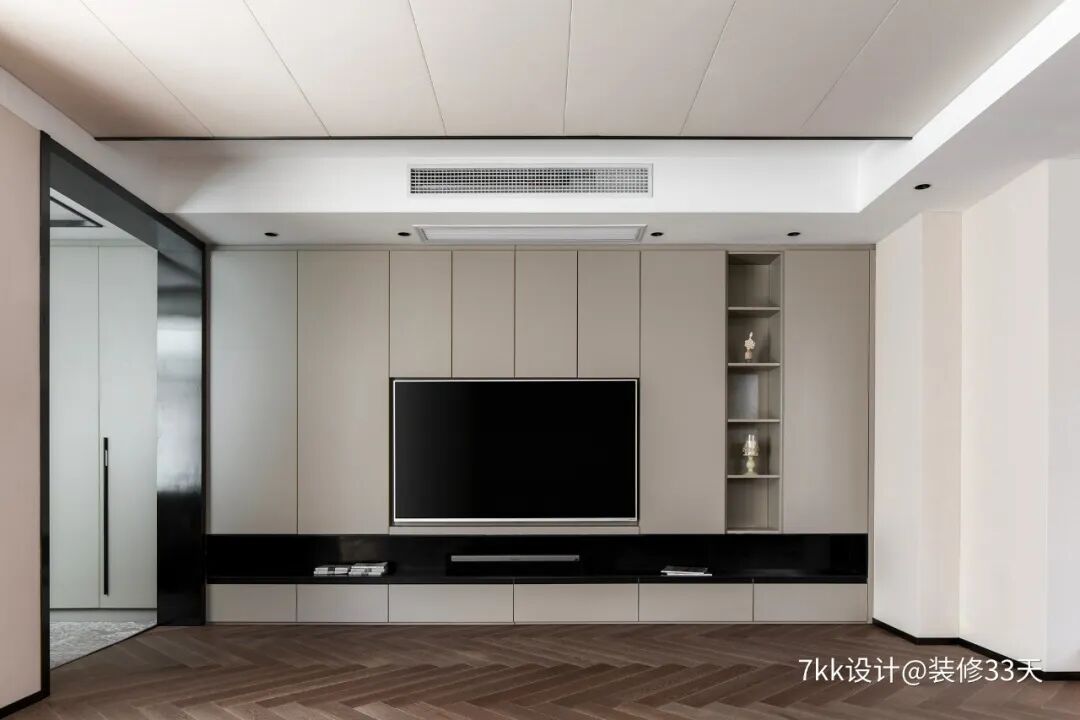整墙柜体中也可以配合其他需求设计,不一定要全部做成柜子,装修这件事本来就是人人不同的。▲ 顶天立地的柜门可能会增加变形的风险,如果能不做太高就尽量分层设计