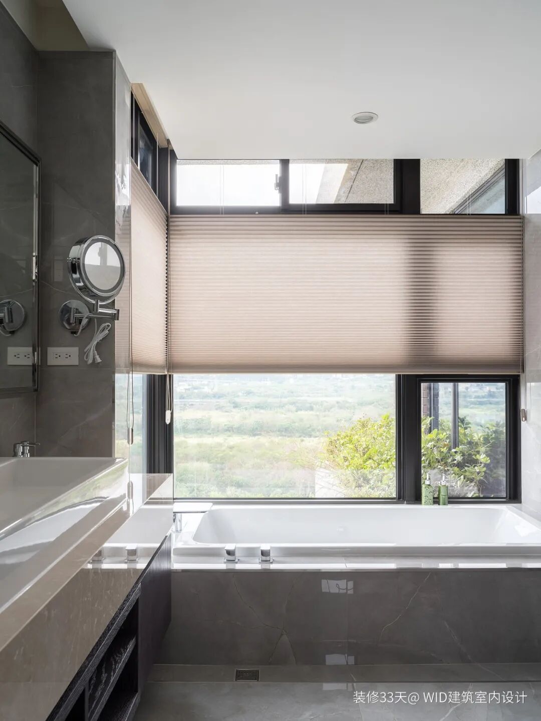 ▲ 主卫,整体以浅色为基调,墙面与地面通铺大理石瓷砖,格调高级