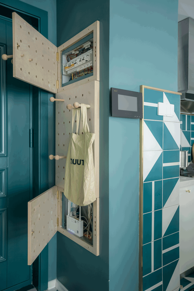 ▲ 另一侧墙面设计洞洞板,增加功能的同时将电箱隐藏起来